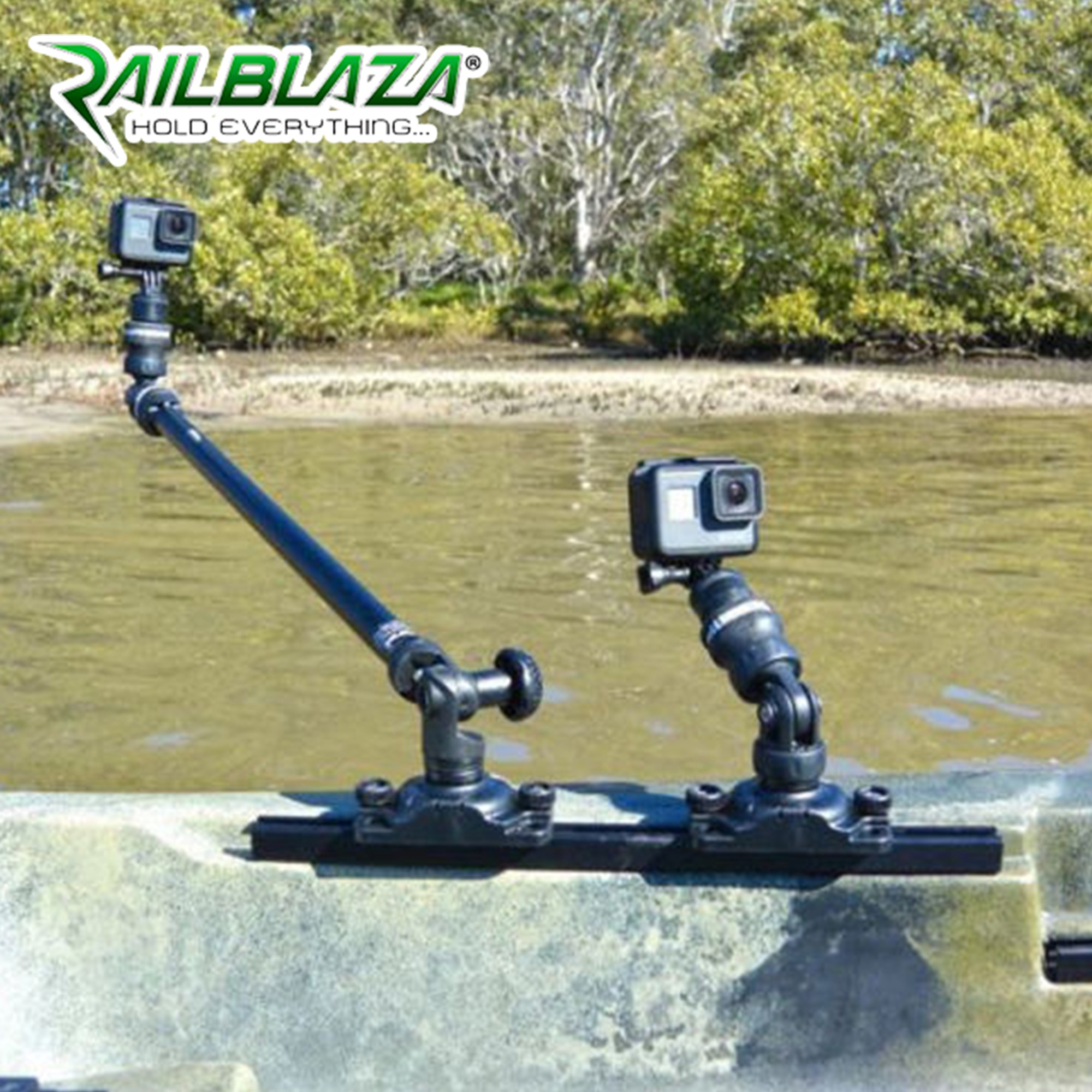 This innovative GoPro mount will hold your camera and capture the action for you! It can be used on kayaks, bass boats, sailboats, inflatables, motorcycles and any other type of vehicle. Compatible with any RAILBLAZA mount, this is the most versatile camera mount on the market.