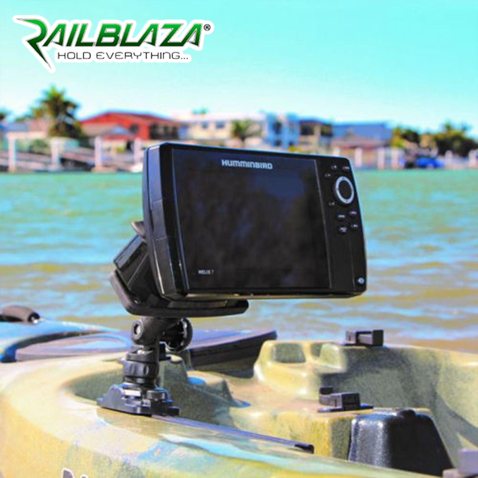 Also with the correct RAILBLAZA mount, you can mount your fish finder on a rail, or inflatable tube!